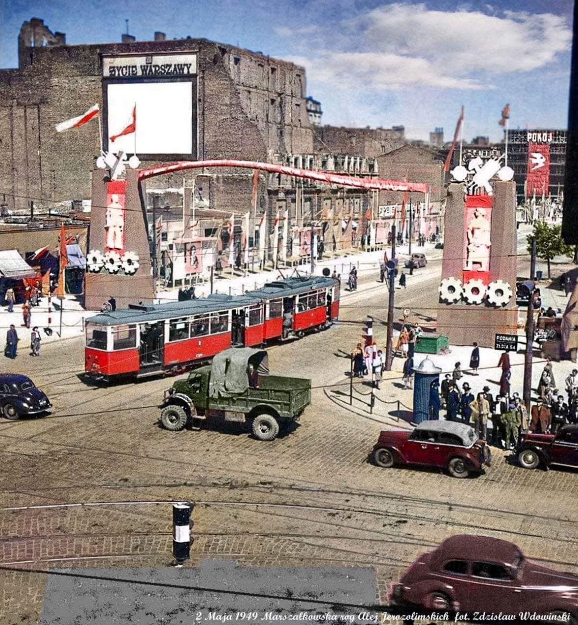📸 Na zdjęciu skrzyżowanie ul. Marszałkowskiej z al. Jerozolimskimi 1949 r.