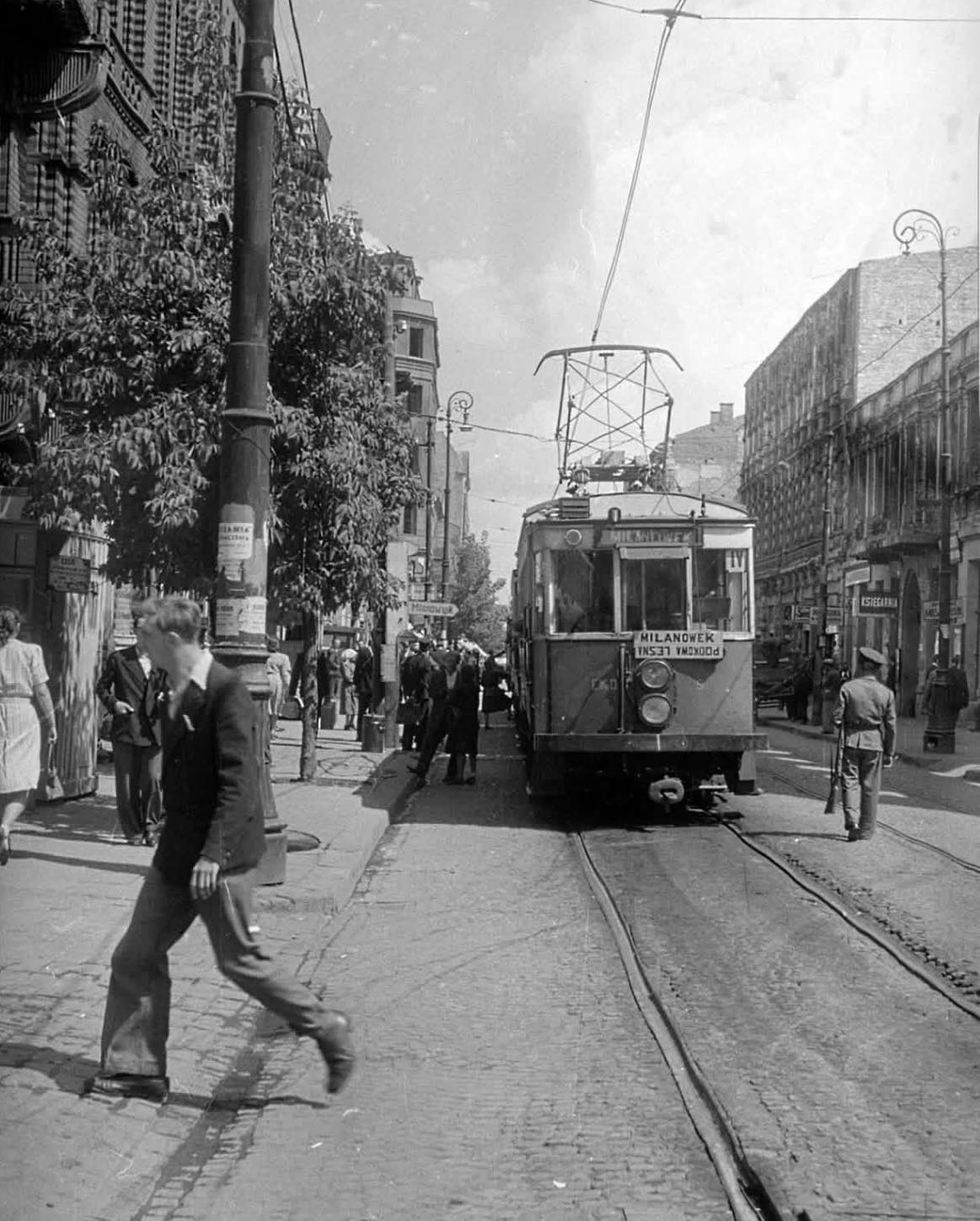 🚉Na zdjęciu przystanek końcowy EKD (WKD) przy ul. Nowogrodzkiej 1947 r.