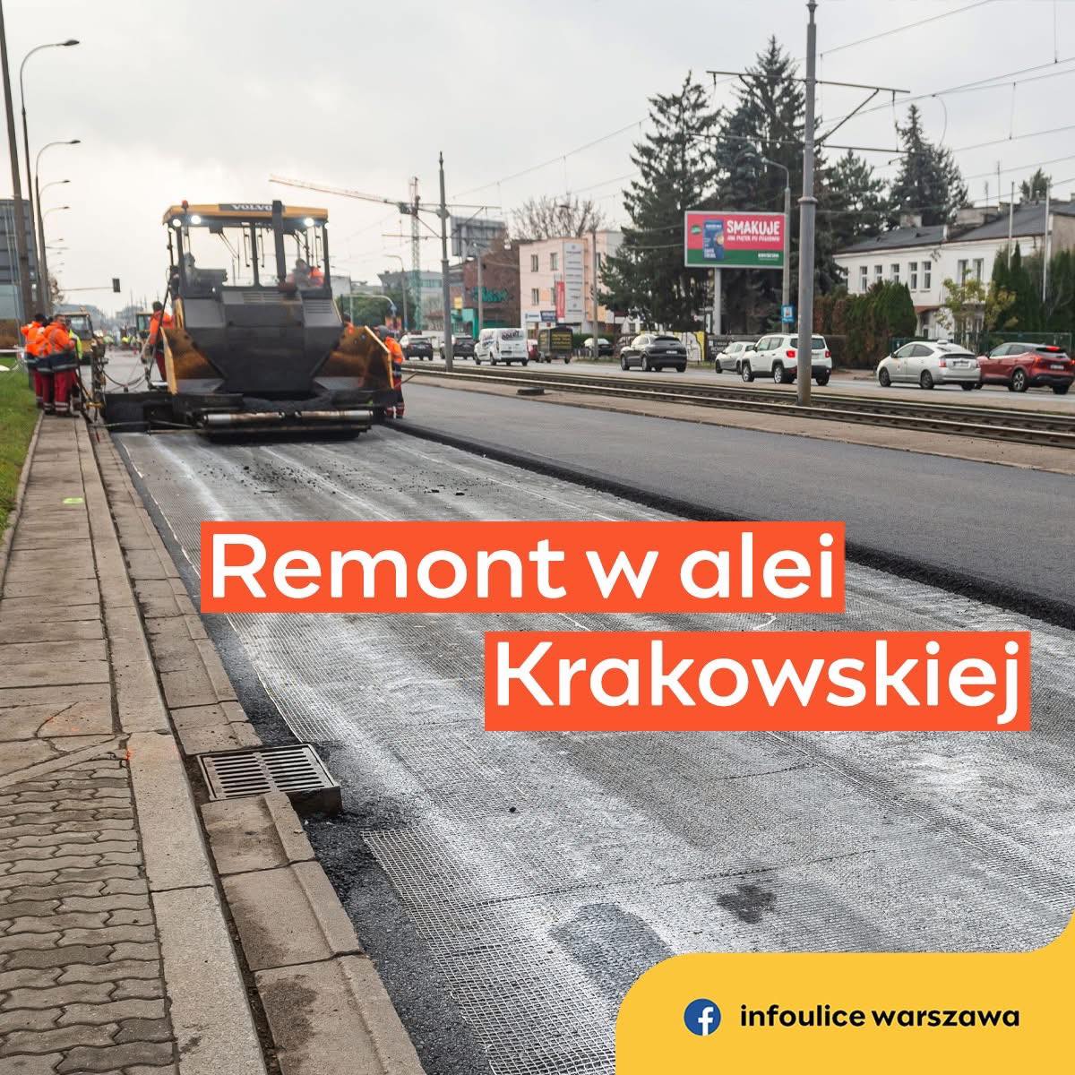 🚜⛏ Kolejny etap prac w alei Krakowskiej. Drogowcy zamkną prawe i środkowe pasy pomiędzy trasą S2 a granicą Warszawy. Kierowcy przejadą lewymi.