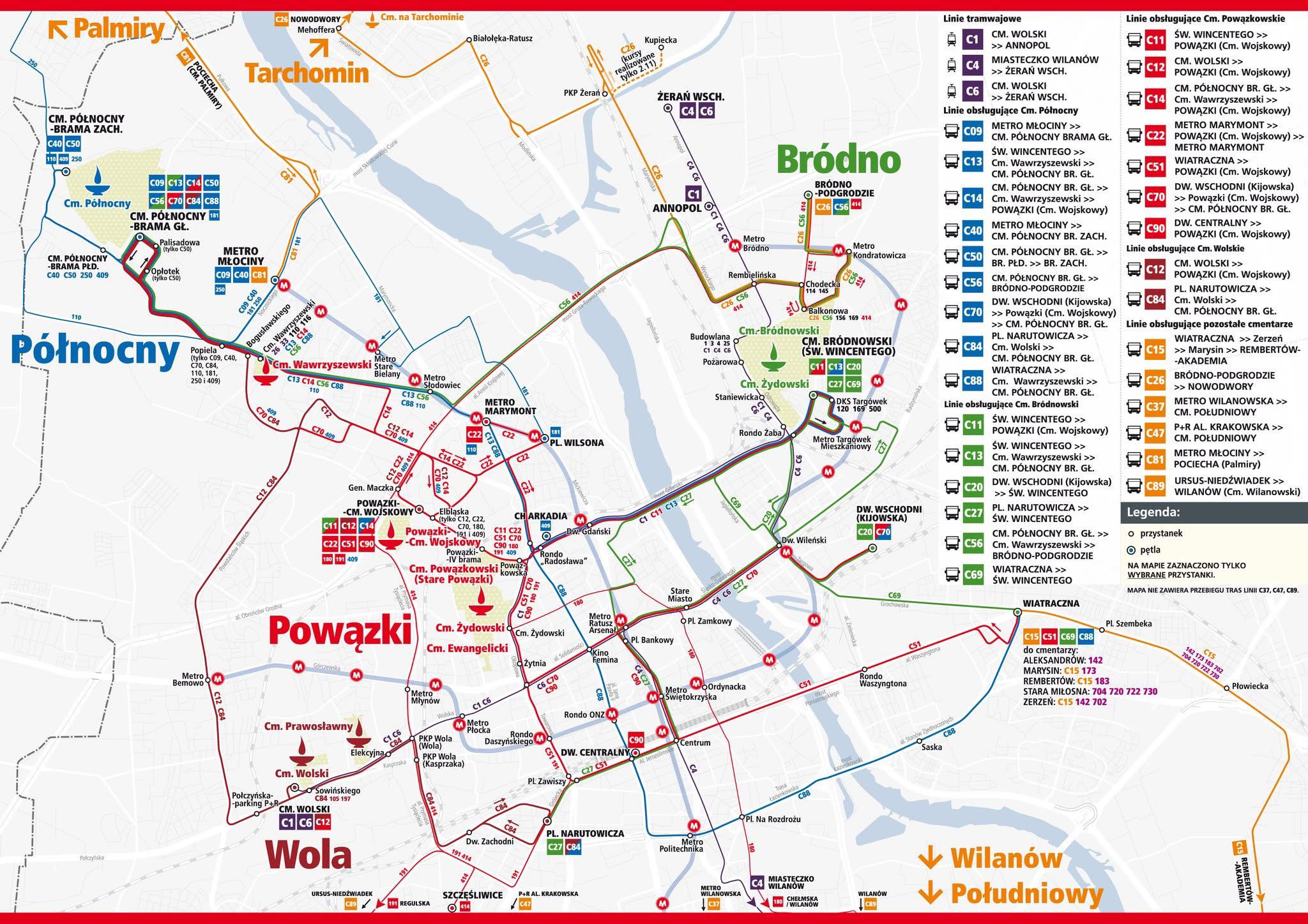 ➡️ W sobotę i niedzielę będzie obowiązywała specjalna organizacja ruchu w rejonie wszystkich większych, warszawskich cmentarzy. Zostaną uruchomione dodatkowe linie tramwajowe C1, C4 i C6 oraz autobusowe C09, C11, C12, C13, C14, C15, C20, C22, C26, C27, C37, C40, C47, C50, C51, C56, C69, C70, C81, C84, C88, C89, C90.