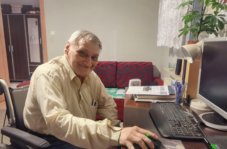 Mirosław Tkaczyk (MT): To ja bardzo się cieszę, że mam z kim rozmawiać, bo uwielbiam kontakt z ludźmi. Urodziłem się w Warszawie w 1956 r. i do 2010 r. mieszkałem w różnych miejscach na Ochocie. Od urodzenia jestem osobą niepełnosprawną, cierpię na mózgowe porażenie dziecięce. Do 2010 r. poruszałem się o kulach, ale w pewnym momencie na moich barkach było zbyt duże obciążenie. Dosłownie! Stanąłem przed wyborem: dalsze pogarszanie się stanu barków lub wózek inwalidzki. Wybrałem tę drugą opcję.